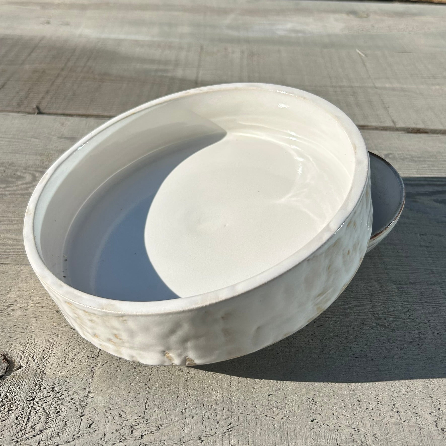 Son émail satiné, légèrement irrégulier, capte la lumière et révèle les traces subtiles du modelage, témoignant du travail artisanal.